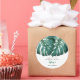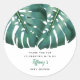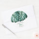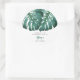 Elegante de chá de fraldas tropical com ilustração das folhas de monstera verde. A mensagem diz: "obrigado por comemorar conosco." Esta design de folhagem em verde é excelente de um chá neutro em relação ao gênero no verão.