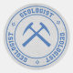Geólogo - letras de estilo colegial azul e martelos de rock cruzados.