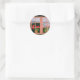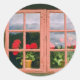 Adesivo Redondo Gerânios Violetas Na Janela De Um Ho Tradicional