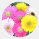 Uma fotografia de cores da margarida de Gerbera amarela e rosa. O nome da foto vem das sete margaridas que parecem estar posando para uma foto da equipe. Eu coloquei as margaridas na grama.