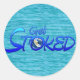 Stoked é um termo surfista que significa ser feliz ou excitado. Faça uma frase com um surfista andando em um dentro de onda.