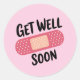 Design featuring a stylized pink bandage with a delicate white dotted texture to mimic medical adhesive. Text "GET WELL SOON" in bold black lettering.