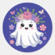 Traga um pouco de doçura assustadora ao seu estilo com este adorável design floral fantasma! Apresentando um fantasma feliz vestindo uma coroa floral colorida, rodeada por borboletas e flores, é a mistura perfeita de charme de Halloween e vibes de kawaii. Excelente para góticos pastéis, amantes de cottagecore e roupas de época assustadora.