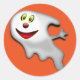 Um adesivo redondo mostrado com um impressão fantasma de halloween. Personalize este item ou comprar como está. com.