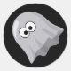 Um adesivo redondo mostrado com um impressão fantasma assustador de halloween. Personalize este item ou comprar como está. com.