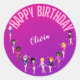 Adesivo Redondo Ginástica Amigos "Feliz Aniversário" Púrpura Rosa