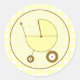 Um adesivo com uma dentro de bebê amarela clara com carruagem em círculo. Fundo de gingham amarelo. Procure itens correspondentes, como convites na seção "Compro Bebê" da Loja de Escolas Rosa.