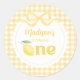 Gingham Lemon Themed primeiro aniversario Clássica Round Sticker