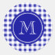 Adesivo Redondo Gingham marinho Azul e Branco, seu Monograma