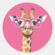 Girafa com óculos cor-de-rosa sobre fundo rosa. Este é adesivo para os amantes da girafa.