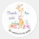 Adesivo Redondo Girafa Obrigado por vir à minha festa