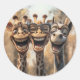 Um trio de girafas ao estilo cartoon posam com sorrisos grandes e óculos grandes, radiando alegria e amizade. Perfeito para conteúdo iluminado, designs de animais ou meios de comunicação para crianças.