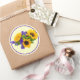 Adesivo redondo com imagem de três girassóis amarelos brilhantes e estados de mar azul sobre amarelo macio com uma borda roxa. Essa variedade de estática produz grandes aglomerados de flores azuis profundas durante uma longa estação, perfeitas para uso tanto em arranjos de flores secas como frescas. O girassol (Helianthus annuus) é uma planta nativa anual das Américas. Possui uma grande inflorescência (cabeça florida) e seu nome deriva da forma e da imagem da flor, muitas vezes usada para representar o sol. Veja confetti e papel de empacotamento. Veja toda a coleção Flowers & Plant Sticker na seção CARDS, POSTCARDS & STICKERS.
