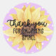 Adesivo Redondo Girassol Amarelo Roxo Obrigado A Comprar Pequeno