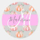 Adesivo clássico redondo monograma feminino com primavera / queda cor-de-rosa floral e abóboras de pêssego e fundo de cinza. Seu nome personalizado e monograma são escritos em uma elegante cinza escrita à mão e um roteiro branco com fundo rosa. Você pode alterar a cor do texto, o estilo e o tamanho da fonte usando a opção personalizar.