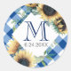 Este adesivo de agradecimento foi projetado para combinar com a coleção de girassol e xadrez da VG Invites em azul e amarelo. Perfeito para casamentos de churrasco I do. Personalize com seu monograma, inicial do sobrenome e a data do seu evento. Para ver mais designs rústicos de churrasco de verão como este, visite www.zazzle.com/vginvites