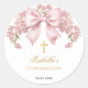 Adesivo Redondo Girl Confirmation Pink Bow Faux Gold Cross Floral