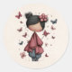 Stickers with an image of a young girl holding a butterfly wand. An adorable unique retro style doll with rosy cheeks. Butterflies flying all around. Sweet and cute.