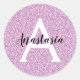 Adesivo Redondo Girly Glam Purple Glitter Sparkles Nome do Monogra