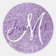 Adesivo Redondo Girly Monogrammed Faux Ametimst Glitter