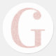 Adesivo Redondo Girly Pale Rosa Dourada Glitter Monograma G