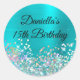 Adesivo Redondo Girly Turquoise Blue Foil Holo Glitter Birthday