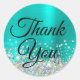 Adesivo Redondo Girly Turquoise Ombre Foil Holo Glitter Obrigado