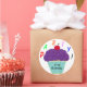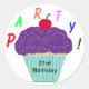 Adesivo Redondo Glacé roxo de aniversário Cupcake de baunilha
