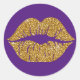 Adesivo Redondo Glam Dourado Glitter Lábios Trendy Sparkle Purple
