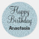 Adesivo Redondo Glam Happy Birthday Blue Silver Glitter Sparkles
