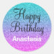 Garota personalizada e glam Parabéns clássicos redondos de aniversário com um brilhante, colorido, rosa/ azul/ turquesa/ aqua/ lilac/ roxo brilha fundo ombre e elegante escrevendo preto e branco. Você pode adicionar facilmente o nome de sua escolha e alterar a cor e a fonte do nome usando a opção personalizar!