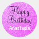 Adesivo Redondo Glam Happy Birthday Rrople Glitter Sparkle Name