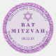 Esses adesivos roxos personalizados são fáceis de personalizar e fazer um excelente adicional para os favoritos para festas do Bat Mitzvah. Colocada sobre um fundo púrpura de lavanda pastel pálido e amarrada em um brilho púrpura sujo, todos os quatro modelos de texto em roxo real escuro podem ser editados com sua redação preferida para o adesivo perfeito. Terminado com uma estrela brilhante e roxa de David no topo, estes autocolantes personalizados estão prontos para ajudar com o seu planeamento do Bat Mitzvah.