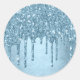 Adesivo Redondo Glitter de Gelo | Azul Faux Sparkle Metálico
