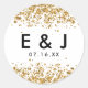 Adesivo Redondo Glitter Dourado Monograma de Casamento com Glitter