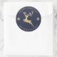 Adesivo Redondo Glitter Dourado Reindeer Personalizado Feliz Natal