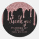 Black and Rosa Dourado Sparkle Glitter Round Obrigado Stickers apresentando falso brilho em tons de ouro rosa, massa e cor-de-rosa pincelada sobre um fundo preto elegante. Seus detalhes, aliados à nossa tipografia moderna, com script chic, fazem disso a adição perfeita às bolsas de troca de seus clientes ou apenas para dar presentes nas convenções. Coloque-o nos seus sacos de presentes! Entre em contato conosco em cedarandstring@gmail.com se precisar de assistência com o design ou os produtos correspondentes.