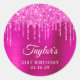 Crie seu design aniversário de 21 anos num adesivo redondo. Garota, brilho rosa quente e faísca sobre um gráfico de arte digital de folha fina magenta com metal escovado no estilo falso. Personalize os estilos de fonte para criar seu próprio livro convidado sua celebração especial. Uma caligrafia elegante clássica emparelhada com uma fonte serif de todos os bonés. Você pode mover os gráficos falsos. Os impressões de trabalho de arte digital como uma foto neste design.