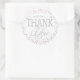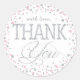 Adesivo Redondo Glitter prateado e borrifador rosa Obrigado Rótulo