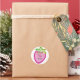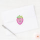 Captivando o adesivo de Aniversário de Morango Rosa Y2K. Este design apresenta um morango muito grande, cor-de-rosa e verde, brilhando sobre fundo branco.
