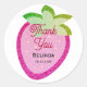 Adesivo Redondo Glitter Rosa Espumante Y2K Morango Obrigado