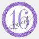 Lavanda roxa, borda redonda brilhante com idade de aniversário personalizável e dentro de texto "Doce 16" em fundo branco. Perfeito para uma elegante festa de aniversário adolescente moderna, doce dezesseis anos, e 16º aniversário, e selas de convite. Trabalho de arte é uma imagem impressa de brilho - não é usada brilho real. Visite o compro Paper Grape Zazzle para coordenar artigos de partes, artigos de papelaria e convites.
