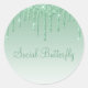 Adesivo Redondo Glitter Verde-Gelo Elegante Script Moderno Girly G