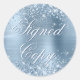 Crie os autocolantes "com cópia assinada" com um brilho azul-claro romântico e uma folha metálica falsa. O design impressão como uma foto, ou falso brilho. Você pode personalizar a cor do texto e a cor do plano de fundo. Fonte do script de caligrafia do rico de estilo clássico.