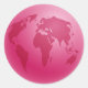 Ilustração gráfica de um globo cor-de-rosa apresentando um mapa do mundo inteiro nele. Imagem disponível em vários presentes e produtos.