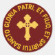 A oração católica antiga conhecida como "Glory Be" em latim começa "Gloria Patri, et Filio et Spiritui Sancto". A tradução em inglês é literal: Glória seja ao Pai, ao Filho, e ao Espírito Santo." Aqui está o latim emparelhado com a imagem de uma cruz, num design que incorpora tons de vermelho festivo e ouro. Este design de ouro parece bom com uma variedade de cores de fundo... Sinta-se livre para personalizá-lo de acordo com o seu gosto!