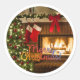 Adesivo Redondo Glowing Christmas Tree and Fireplace Round Sticker