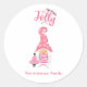 Adesivo Redondo Gnomo Menina de Natal Rosa com Chapéu de Vinho Ale
