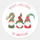 Um autocolante de férias simples e giro, ao estilo nórdico, com três gnomos de Natal giros, escandinavos, com chapéus e tunicados vermelhos e verdes sazonais. Você pode personalizar um "Feliz Natal, Feliz Natal," etc., saudação e seu nome em tipografia divertida.