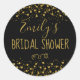 Estes chás de panela irão tornar o acessório perfeito para qualquer noiva que esteja apresentando um design de confete de folha de ouro contemporâneo sobre um fundo preto opcional. Esses adesivos podem ser personalizados para sua ocasião especial e tornariam o acessório perfeito para chá de panela, festa de noivado, festa de aniversário e muito, muito mais. Use o modelo fornecido para adicionar texto personalizado adequado ao seu evento. Procure ID455 para ver outros produtos com este design.